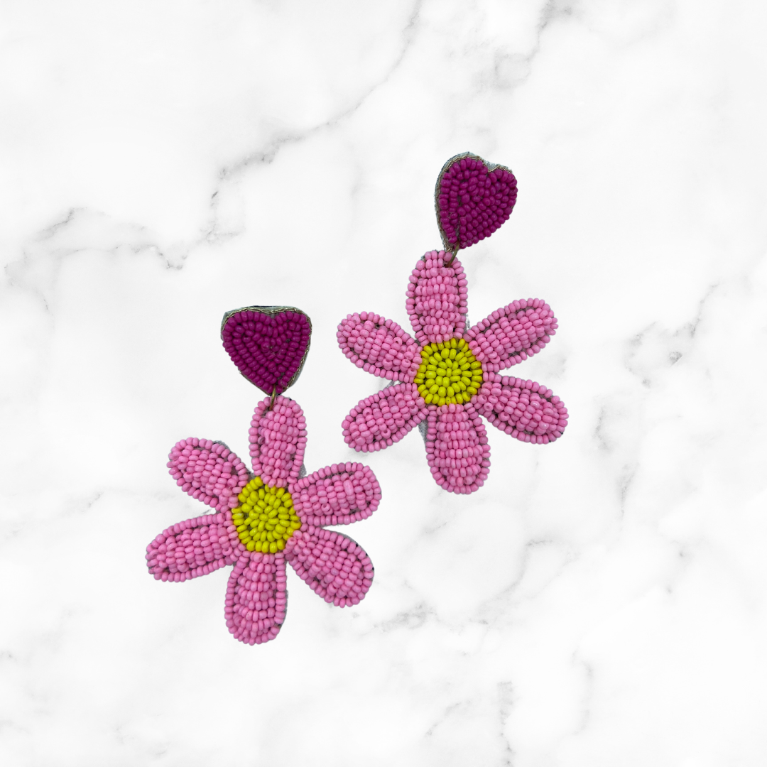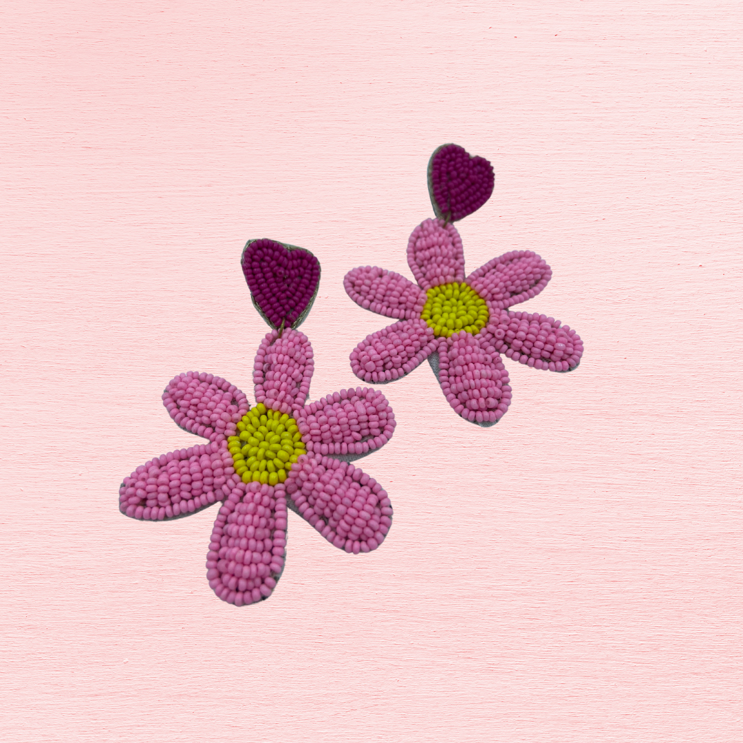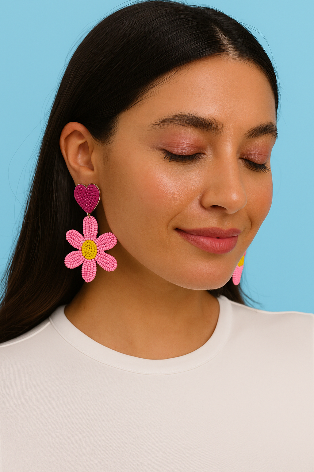 Brighten your day with these handcrafted earrings featuring cheerful daisy-shaped beaded blooms and cute heart-shaped studs. Bursting with petal-powered sass, they’re the perfect playful accessory for brunch dates, birthday parties, or any time you’re feeling flirty and fun.