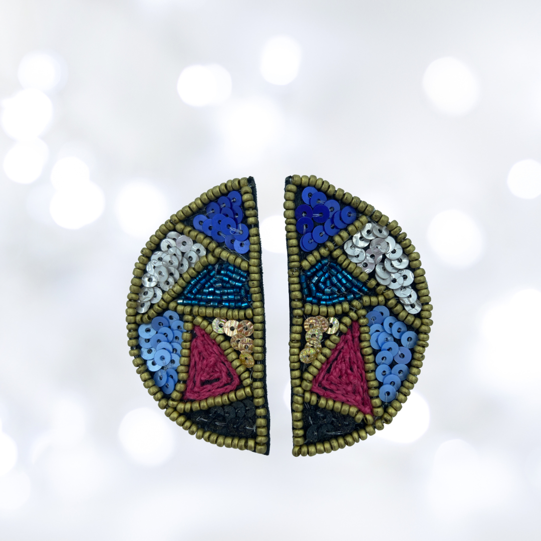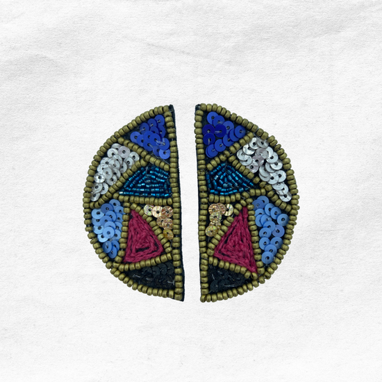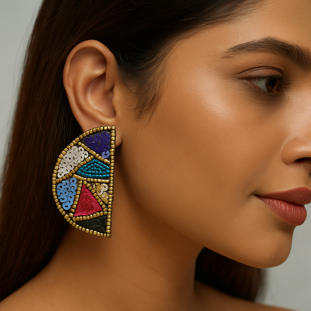 A tribute to the moon’s quiet elegance, these handcrafted half-moon earrings feature intricate beadwork in bold red and radiant gold. Striking yet lightweight, Chandra adds just the right amount of drama — whether you’re dressing up for a celebration or simply glowing on an ordinary day.