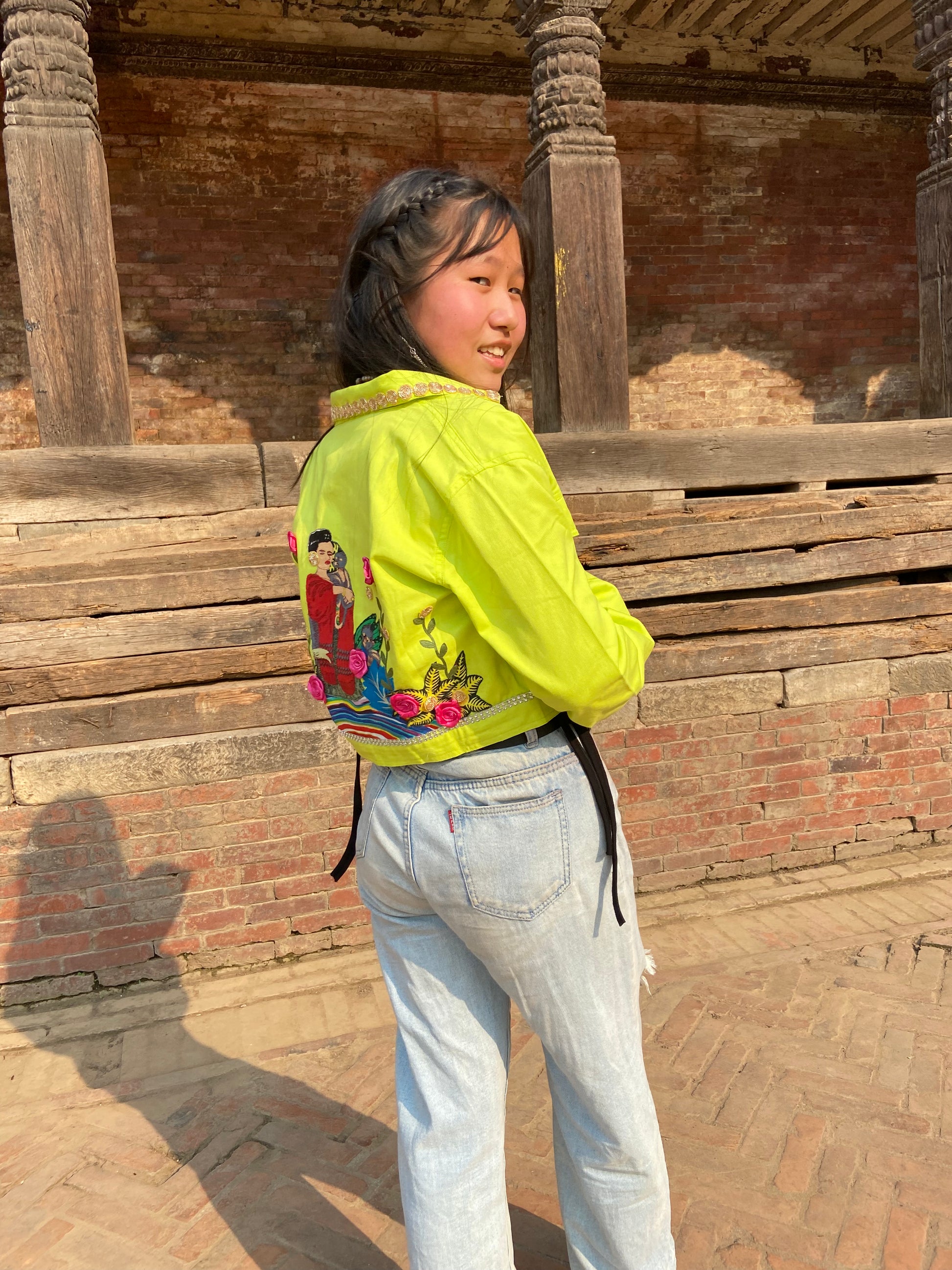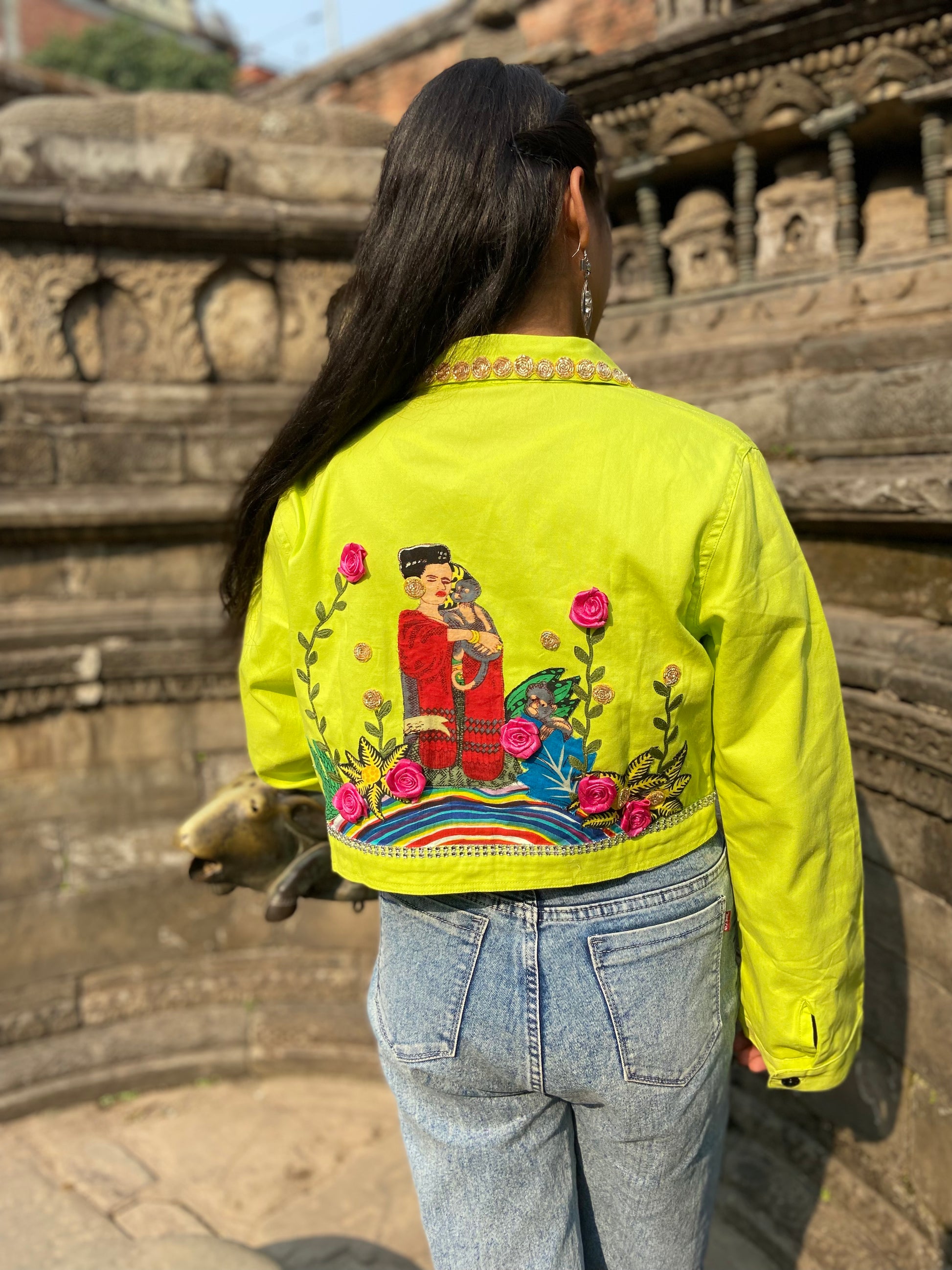 Are you ready to shine brighter than the sun? Feast your eyes on our electrifying neon green jacket with a gold detailed collar that's guaranteed to light up any room you walk into! With its striking neon color and visually captivating design, you'll be the envy of every fashionista out there. Get ready to turn heads and steal the show with this must-have statement piece!