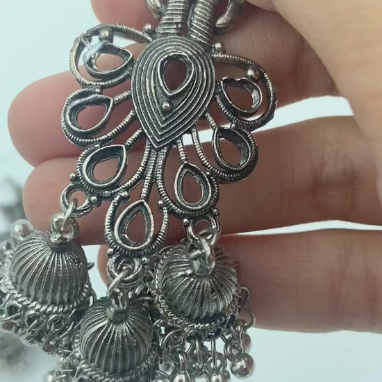 Unleash your inner desi diva with our Tehzeeb earrings! These playfully oxidised danglers bring the perfect edge to your ethnic game. Handcrafted with love and mischief, they're light enough for all-day wear but bold enough to turn heads. Pair with your favorite kurta for casual chai dates or rock them with a saree when you're ready to steal the spotlight at weddings. Who said traditional can't be fun?